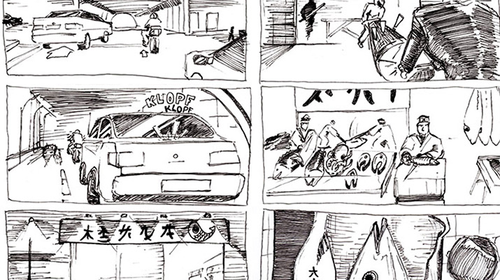 In einem eigenen Freifach werden das Erstellen von Storyboards & Scribbeln geübt.